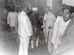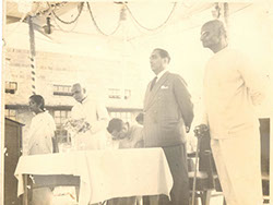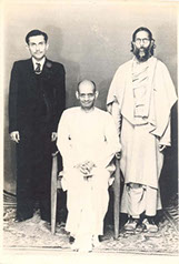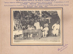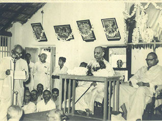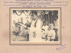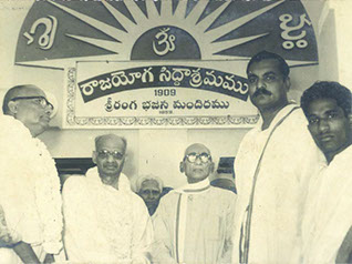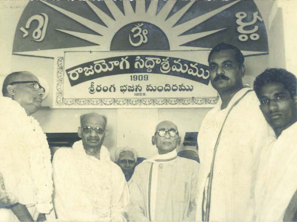 Omkar Swamiji (originator of Shanti Asram in Peda Waltair) standing left of Swamiji - Silver Jubilee of Rajayoga Siddasram in Kakinada – 1959.