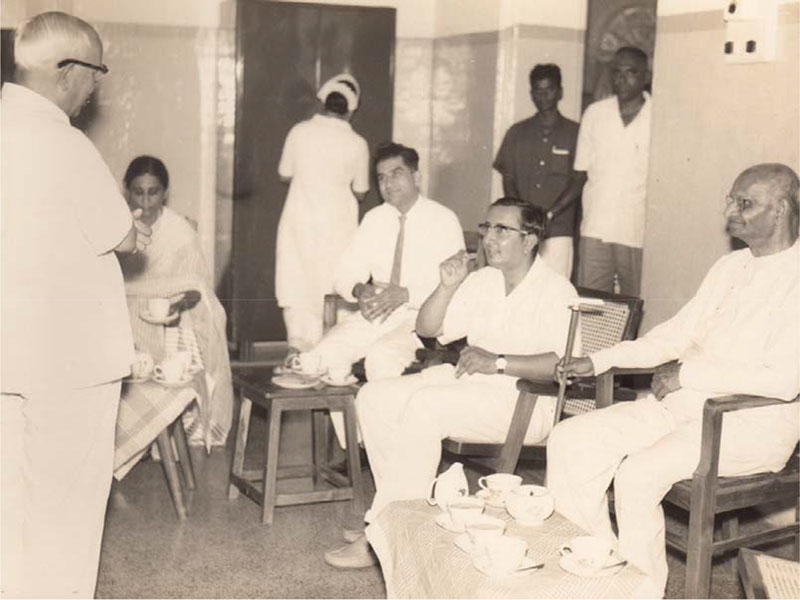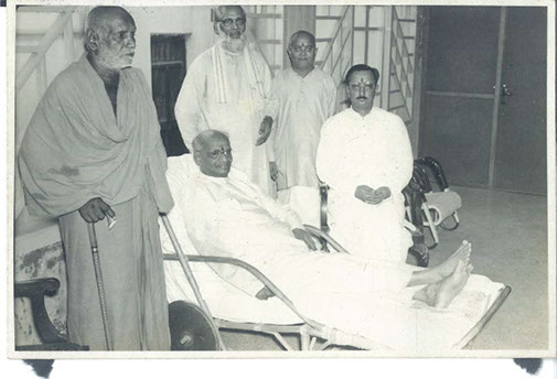 Swamiji sitting with Sri PVG Raju Garu, Dr. Ramana Murthy (orthopedic surgeon), Dr. Lavanya Mukherji and District collector Abid Hussein. (Rama Rao and Williams from Vijayanagaram in the backgound). Rani Chandramati Devi Hospital, Waltair. – 1965.