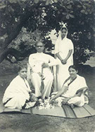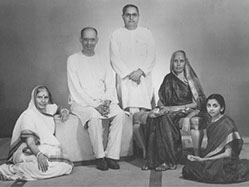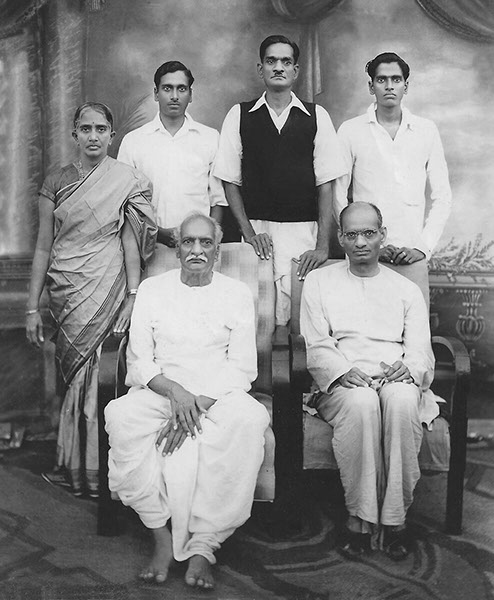Standing: Lakshmi Narasamma garu (Swamiji's stepmother) and her sons: Padmanabha Raju garu, Subba Raju Garu and Krishnam Raju Garu.