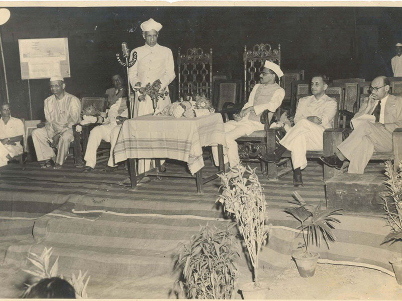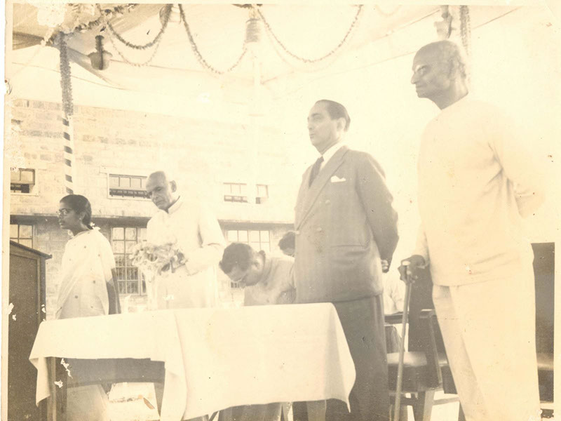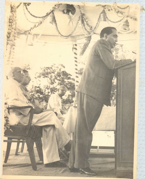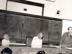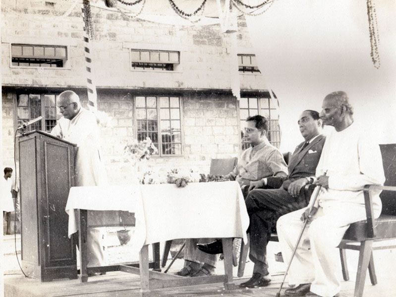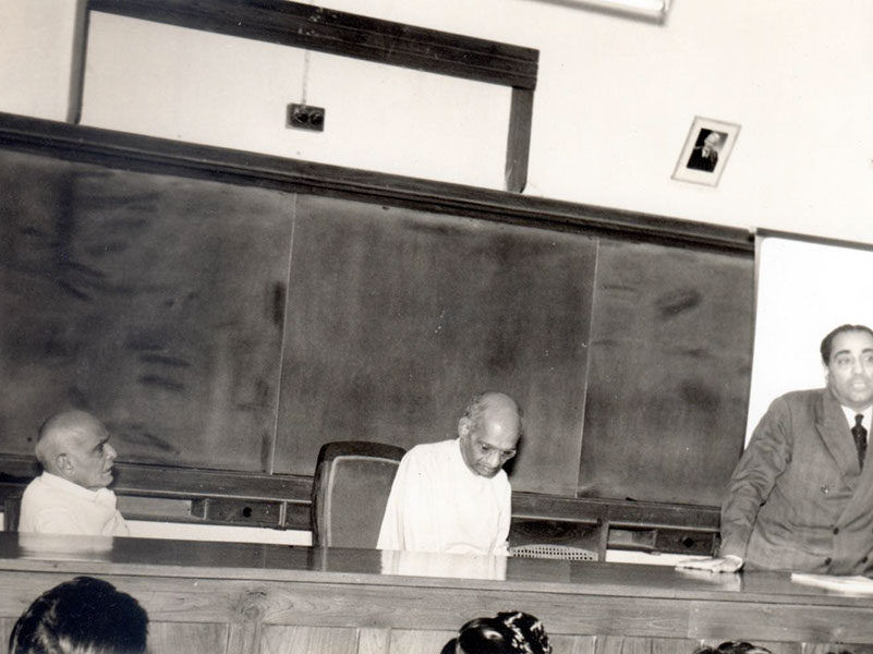 Dr. Homi J. Bhabha speaking, Dr. A. L. Narayana, Sri PVG Raju Garu and Swamiji (Sitting).