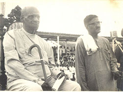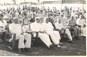 Swamiji and Sri PVG Raju (Sitting) as dignitaries of a public gathering.