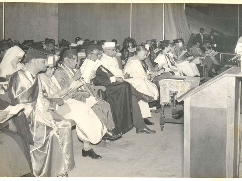 Dr. Homi J. Bhabha, Dr. A. L. Narayana (Vice Chancellor) and Swami Jnanananda in Andhra University.