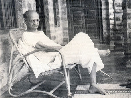 Swami in his night dress continuing to work at the Nuclear Physics Department at 8 PM - before June1961