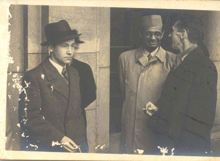 Sri Pajnananda, Architect Sri Chitra and Sri PVG Raju garu sitting. – Vijayanagaram palace –1961.